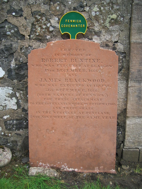 The Covenanters were against the imposition of Episcopal practices by the king. So when they were forced out of their Churches, they met illegally on the moors and hills around Scotland. These services were known as Conventicles and anyone caught attending such a service was liable to execution. Indeed many were killed for just having a Bible on their person when the Dragoons appeared. It is not for nothing that these times are known as the 'Killing Times'. The Churchyard bears testimony to several who died because of their beliefs. More men from the Parish of Fenwick died in the cause of the Covenanters than from any other parish in Scotland.